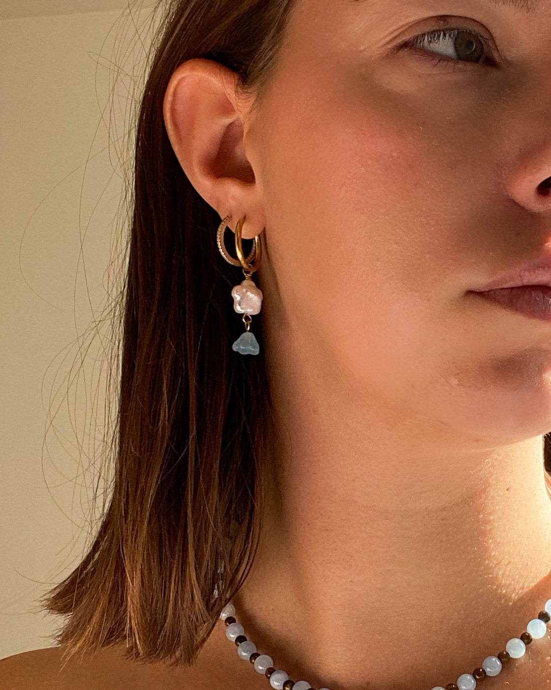 Les créoles Marguerite sont composées de perles d'eau douce et de perle en verre.